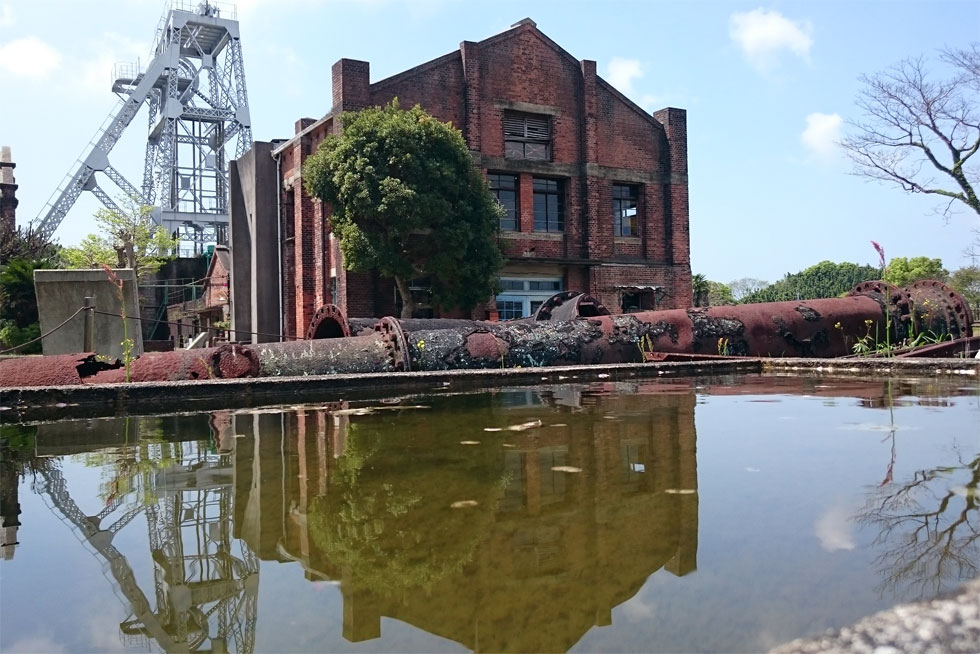 この建物が扇風機室として使用された時代は、現在の倉庫及びポンプ室で使用されていた蒸気動力の扇風機にかわって、電動モーターの大型扇風機が設置されていました。この扇風機の形式では国内最大の容量を誇っていましたが、当時の電気製品はコイルの損傷事故が多かったために、常に予備機を準備していたそうです。建物は煉瓦造になっており、建物の北側から西側にかけてはかつて安全燈室や事務所、繰込場(くりこみば)、身体検査をする検身場(けんしんば)が隣接しており、その痕跡が西側壁面に残っています。さらに南側壁面は、向かい側のポンプ室および倉庫に繋がっていた痕跡が見られます。